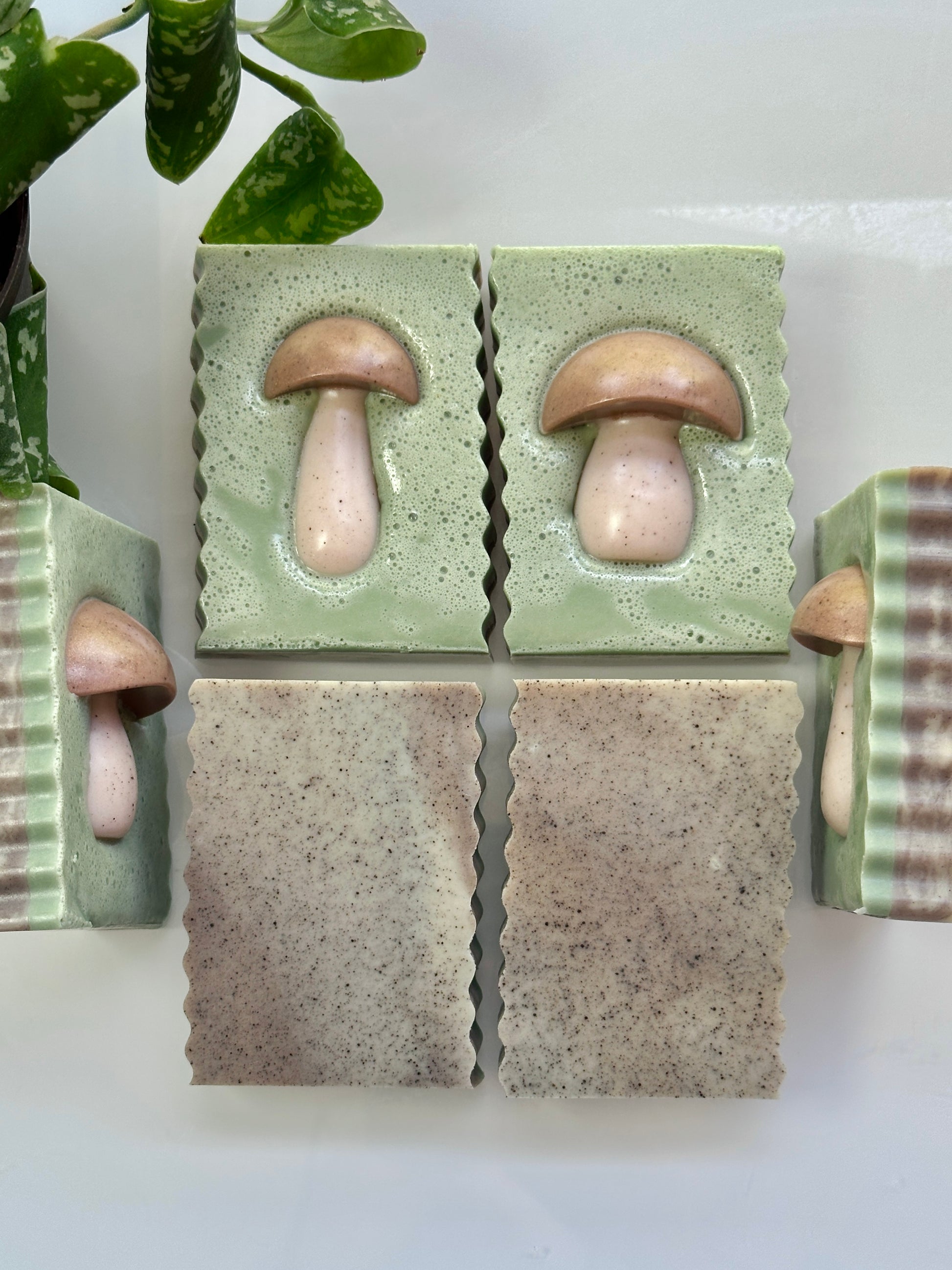 Our Autumn Forage soap captures the spirit of the forest in fall. Crafted with organic aloe vera powder, mineral-rich sea clay, organic black cacao, and a touch of mica for natural depth, it nourishes while evoking the woodland floor. Infused with our homegrown red clover in sweet almond oil, this bar carries both herbal care and grounding richness. Scented with an earthy blend of pine, balsam fir, and cedarwood essential oils, balanced notes of grapefruit, teakwood and juniper berry, it’s reminiscent of a crisp woodland walk. Finished with a fluffy whipped top to mimic moss, this soap is both enchanting and restorative.
